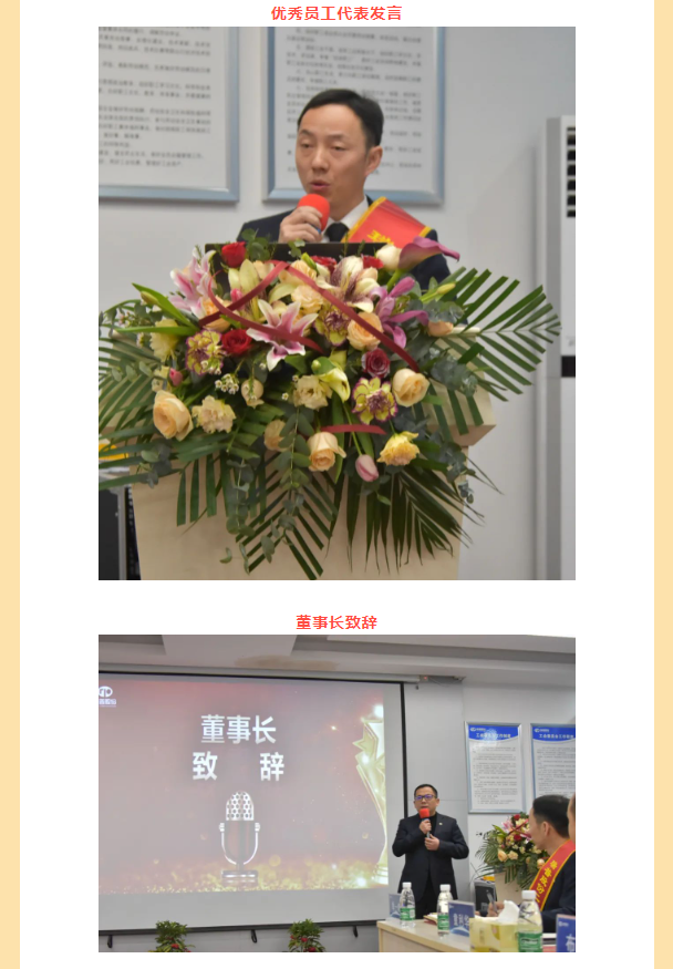 年會開始,董事長上臺致辭,共同回顧過去一年的辛勤與收獲,展望未來的機遇與挑戰(zhàn)。過去一年,全體員工團結協作,攻堅克難,取得了令人矚目的成績。董事長代表公司管理層,向每一位辛勤付出的員工表示衷心的感謝和崇高的敬意。希望未來,繼續(xù)發(fā)揚拼搏精神,共創更加輝煌的明天。最后,對全體員工表達了真摯的新年祝福。